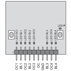 In der Variante RCD21 „Battery Low“ werden nur vier OC-Ausgänge zum Schalten verwendet. Jedem Schaltausgang ist ein Battery Low-Ausgang (BL) zugeordnet, welcher bei Empfang eines Unterspannungstelegramms für 1 Sekunde schaltet.