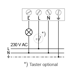 Wird eine Bewegung detektiert, während die gemessene Helligkeit unter dem eingestellten Schwellwert liegt, schaltet der potentialbehaftete 230V-Relais-Ausgang des Bewegungsmelders für die eingestellte Zeit EIN.