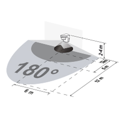 Erfassungsbereich quer max. 12 m, frontal max. 5 m