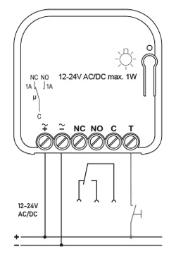 Zusätzlich steht ein Tastereingang zur Verfügung, um den Impuls auch drahtgebunden, z.B. über Schlüsselschalter, auslösen zu können.